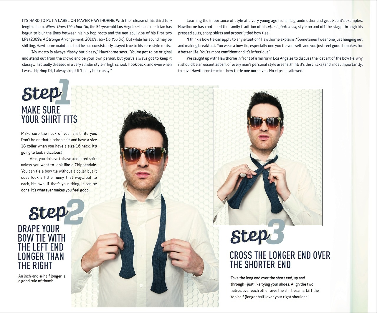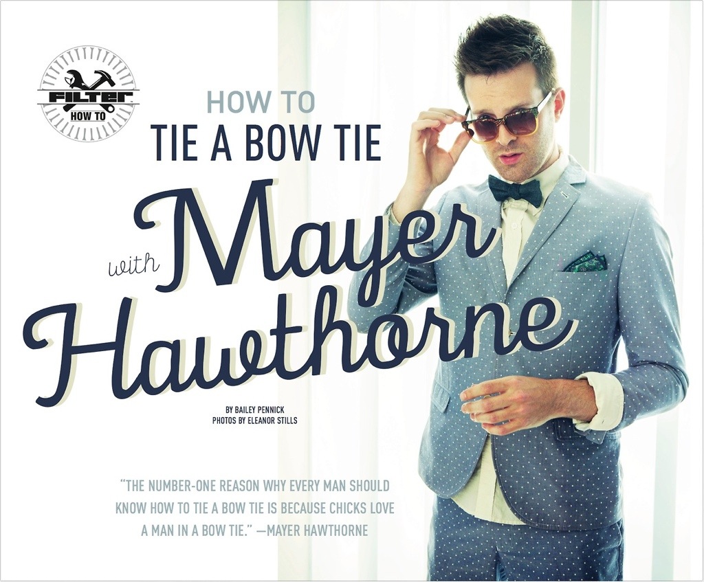 FILTER HOW-TO: How To Tie A Bow Tie With Mayer Hawthorne baileypennickNovember 30, 2013March 19, 2014Features, filter magazine, Post navigation PreviousNext Share this: Click to share on X (Opens in new window) X Click to share on Facebook (Opens in new window) Facebook Like Loading... Related