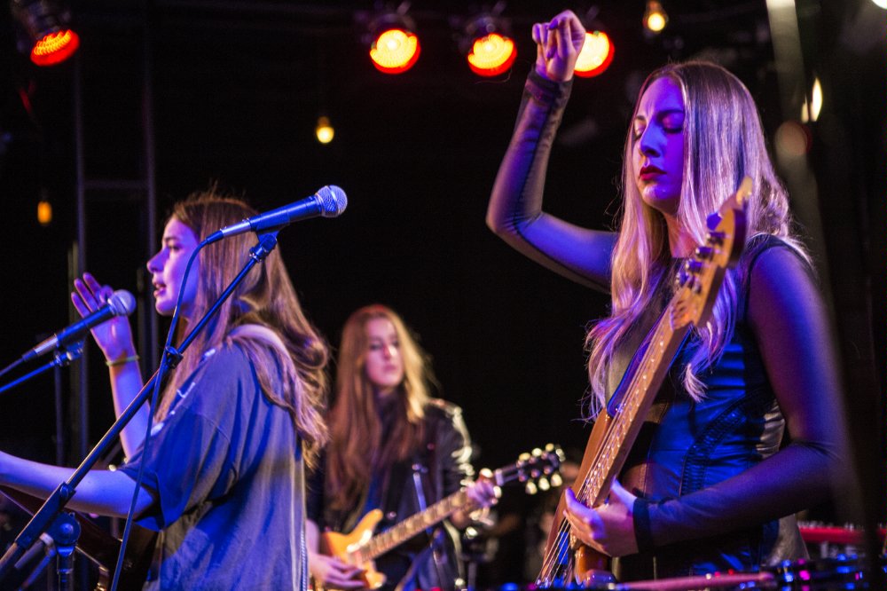 “I just got to cross that off my bucket list,” Este stated proudly to the crowd. “Ever since I heard you on the radio first play ‘Pretty Fly (For A White Guy)’ by The Offspring, I knew I had to do this when I met you.” After a handful of giggles from the audience and the unusually speechless DJ collected himself, the trio answered questions about previously written demos, their endless Valley pride (Ultrazone on Ventura by the Baja Fresh anyone?) and what their favorite Blink-182 song was (“Josie” and “Aliens Exist” for the record) as prompted by Mark Hoppus himself via Twitter. Even in the presence of 150 fans–some complete with homemade HAIM shirts and handwritten letters–Danielle, Alana and Este never took their success for granted. It’s probably what makes the fact that they can harmonize, shred, write songs and still get along as siblings that much sweeter.
