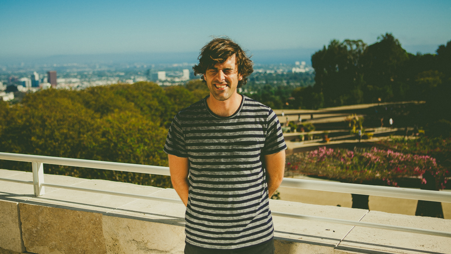 At least it’s not humid. The light reflecting off the Getty Center’s marble walls has made the gardens as bright and hot as a welding torch, but there’s a reprieve from what has been a freakishly humid summer in the typically “it’s a dry heat” City of Angels. Matthew Mondanile wants to sit at a table right out in the sun. It’s a fine choice, but he’s not fully prepared for the consequences. “I just wish I had my sunglasses,” he says as his face twists up into an reflexive squint. “I lost them or, really, I don’t know where I left them.” There are no spare shades in my bag. He doesn’t want to move. “This is totally fine,” he continues with his eyes closed. “I like getting some sun.”