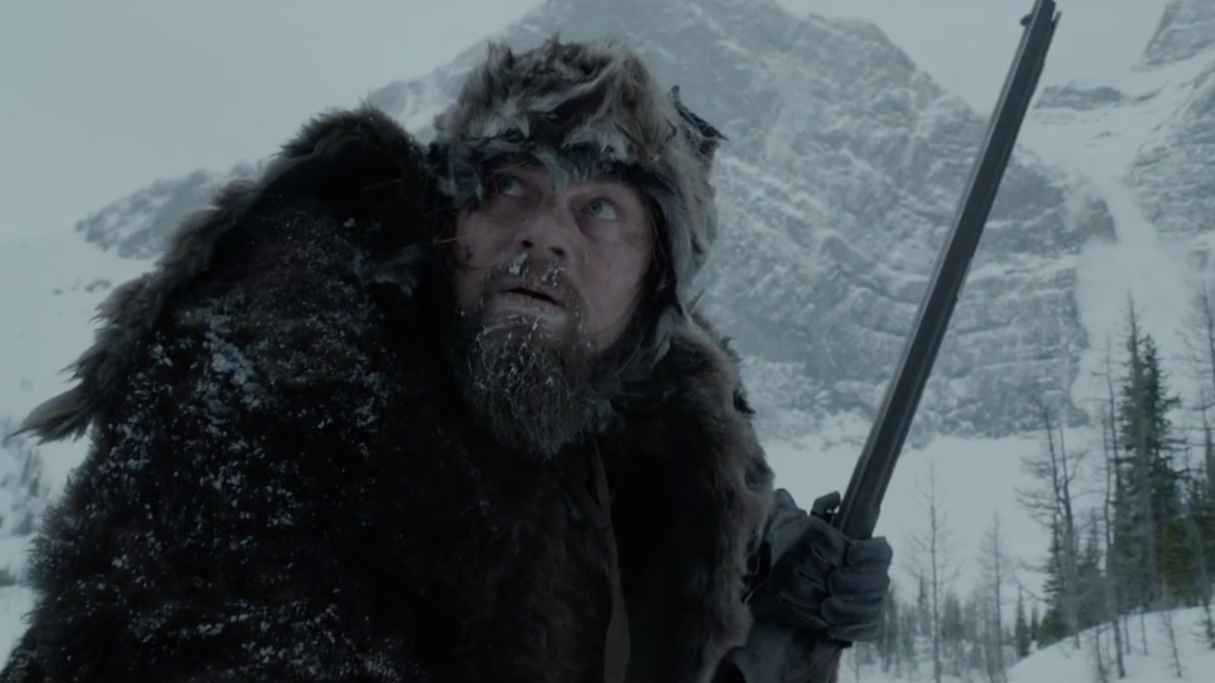 Even as Fitzgerald tries to convince himself that Glass wants to be smothered to death on his makeshift stretcher—“You just gimme a blink if you want me to do it”—Glass refuses to give up and maintains unbroken eye contact with his enemy. He can’t speak because the grizzly slashed his throat, but his piercing gaze is louder and more effective than any scream he could utter. It’s no secret that DiCaprio’s dedication to this role was unparalleled (he ate a real piece of raw bison liver on film for authenticity’s sake), but it’s the simple acting behind his eyes that’s most effective. His full emotional power comes at the start of his journey back from the dead—once the abandoned Glass escapes from his improvised grave, he uses all of his strength to crawl over and touch the body of his slain son. He gently touches Hawk’s frozen face, puts his head next to his, and looks at him with the all the admiration and love of a heartbroken parent.